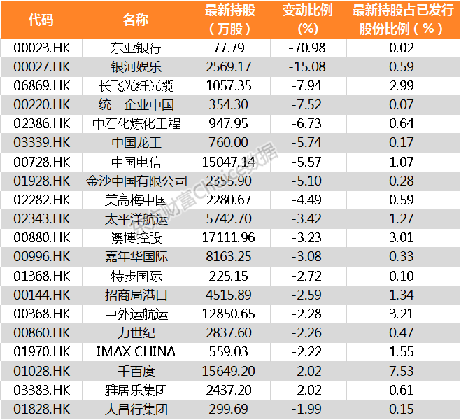 南向资金减持股份占其持股比例前20家公司名单: