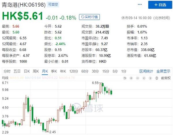 2014年,青岛港(HK:06198)正式在港交所挂牌上市,截至目前,其总市值达338.66亿港元,其中已在港上市H股市值61.66亿港元。