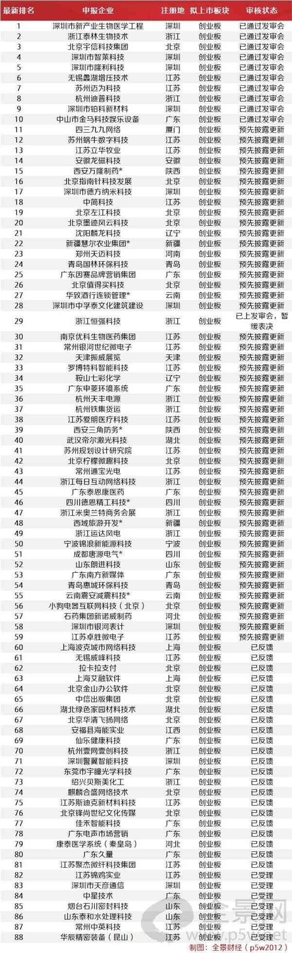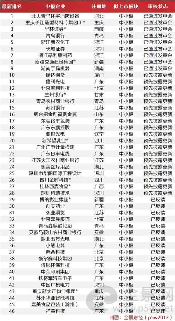 注:带”*为西部12省区市及比照执行的地区首发在审企业。