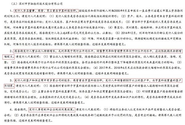 发审委自然也关注到了宇驰检测关联关系、毛利率、与关联公司存在供应商和客户重叠等重重问题。