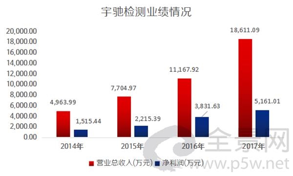 宇驰检测是一家提供生态环境检测及相关技术服务的第三方检测机构。发行人近几年来,业绩表现呈现稳定增长之势。但其2017年扣非后净利润也只是刚刚突破所谓隐形门槛“5000万元”的红线。