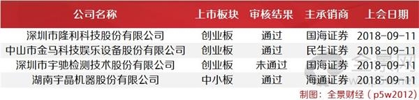 9月11日,4家企业首发上会,3家顺利过会,1家被否。