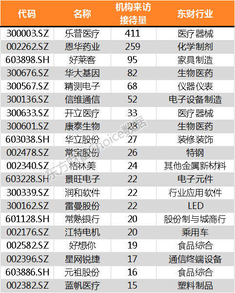 上周接待机构调研前20家公司名单: