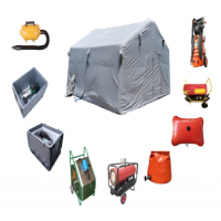 对受到有毒物质污染的人体进行喷淋洗消,也可做临时会议室、指挥部、紧急救护场所等。全套面积30㎡。包括洗消帐篷、电动充排气泵和气瓶充气装置(多口同时充气)、洗消供水泵、洗消排污泵、洗消水加热器、洗消液均混罐、暖风发生器、喷淋系统、洗消废水回收袋、空气升温炉、增压罐、移动高压洗消泵等,各部件之间采用模块化装配与设计,可以快速的组建整套系统,所有管路配备统一快接接头,可临时相互转换,组建时间不超过10分钟。