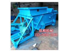 K型给料机由机架、底板(给料槽)、传动平台、漏斗、闸门、托辊组成,当电机开动后经弹性联轴器,减速机、曲柄连杆机构拖动倾斜5度的底板,在辊上作直线往复运动,把煤或其它磨琢性小,粘性不大的松散粒状,粉状物料从给料设备中均匀地卸到受料设备中